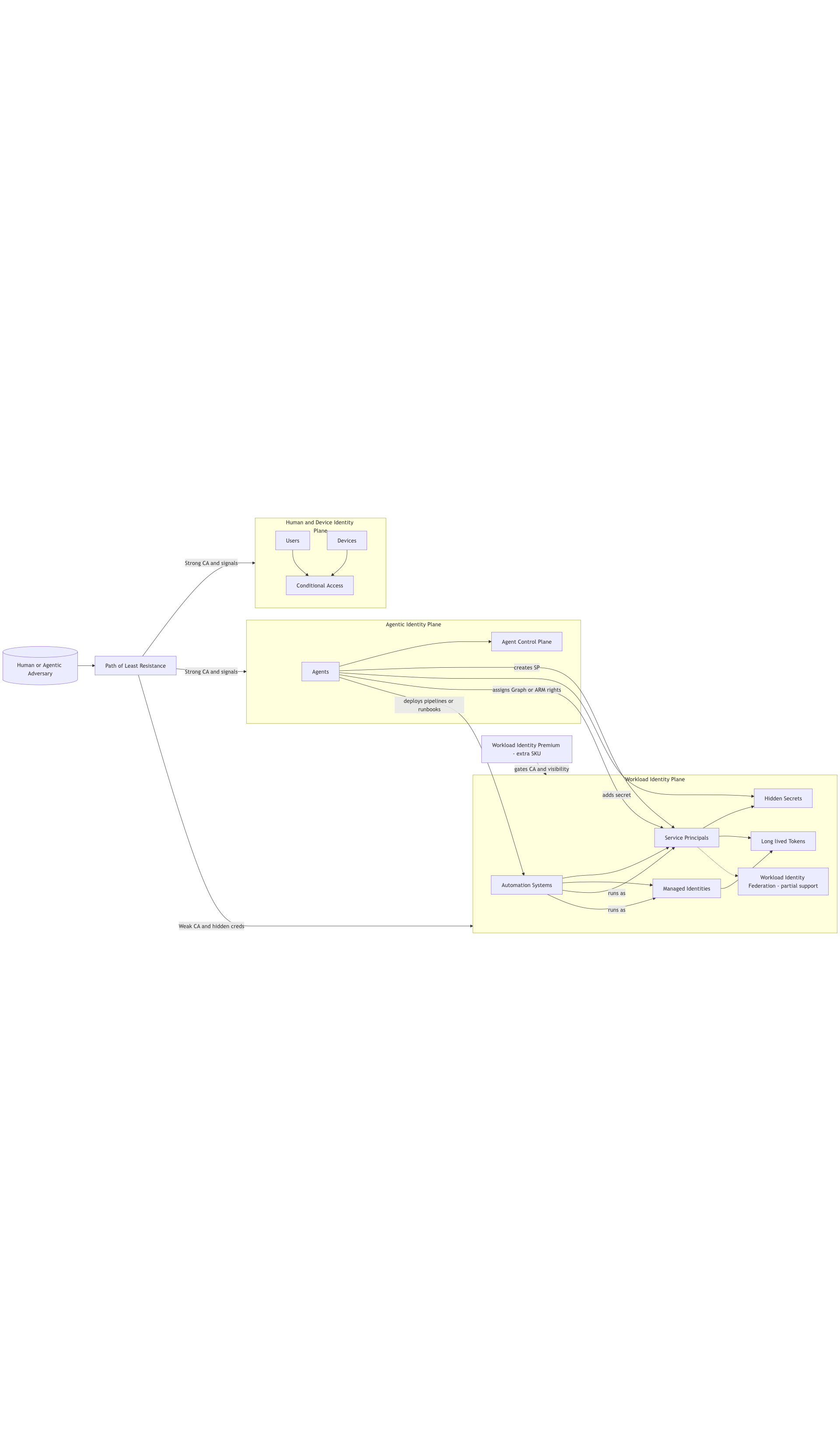 Adding a new class of identities on top of that does not eliminate the underlying problem. It makes it more complicated. The direction of travel is not toward consolidation. It is towards continued multiplication. And each new identity class brings its own control plane, its own default behaviours, its own documentation gaps, its own audit signals, and its own security licence SKU boundaries.